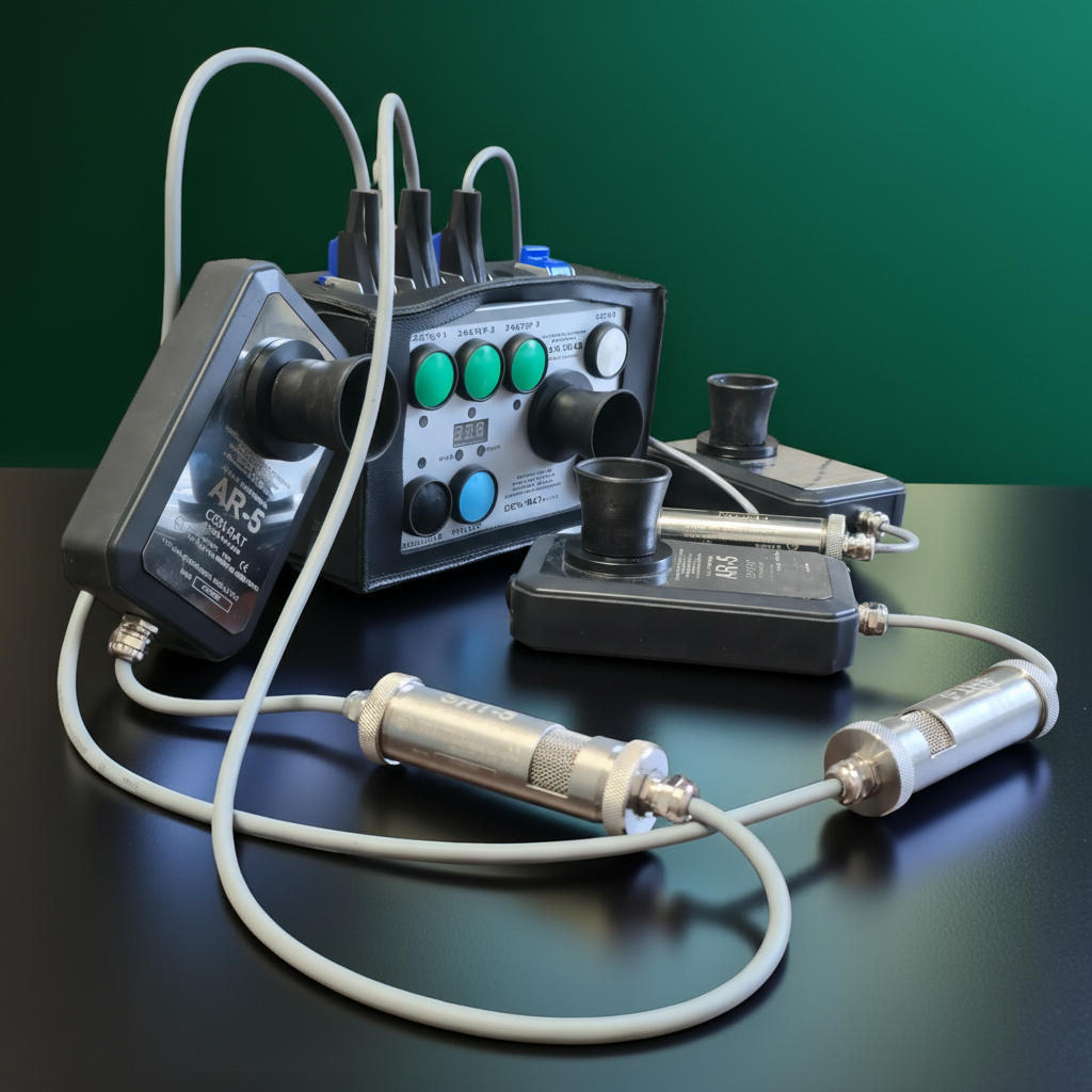 Aparat bazowy może być podłączony z trzema aparatami ratownika przewodem np. rozwijanym z bębna wielokrotnego użycia BWU lub z pojemnika jednorazowego użycia PJU.